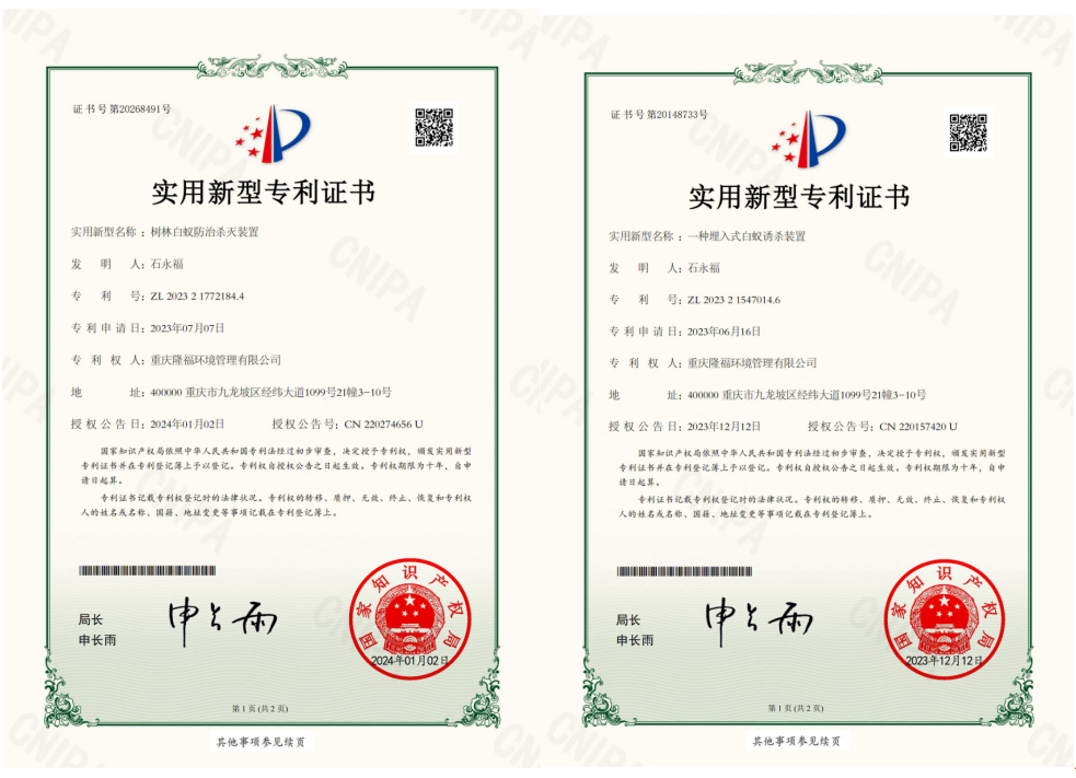 • 2023-12-25行穩(wěn)至遠(yuǎn),我司榮獲全國(guó)首家“白蟻防治服務(wù)單位高級(jí)專(zhuān)業(yè)服務(wù)能力資質(zhì)”